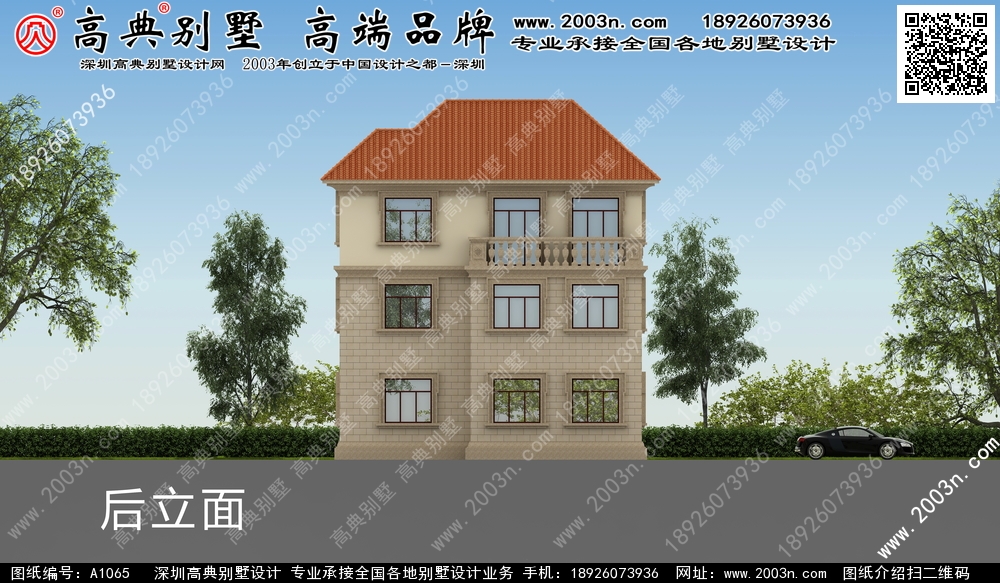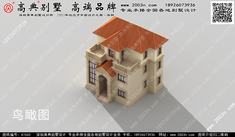 A1065号别墅外墙主要材料:外墙真石漆、外墙砖、外墙欧式水泥构件、屋面S瓦 |