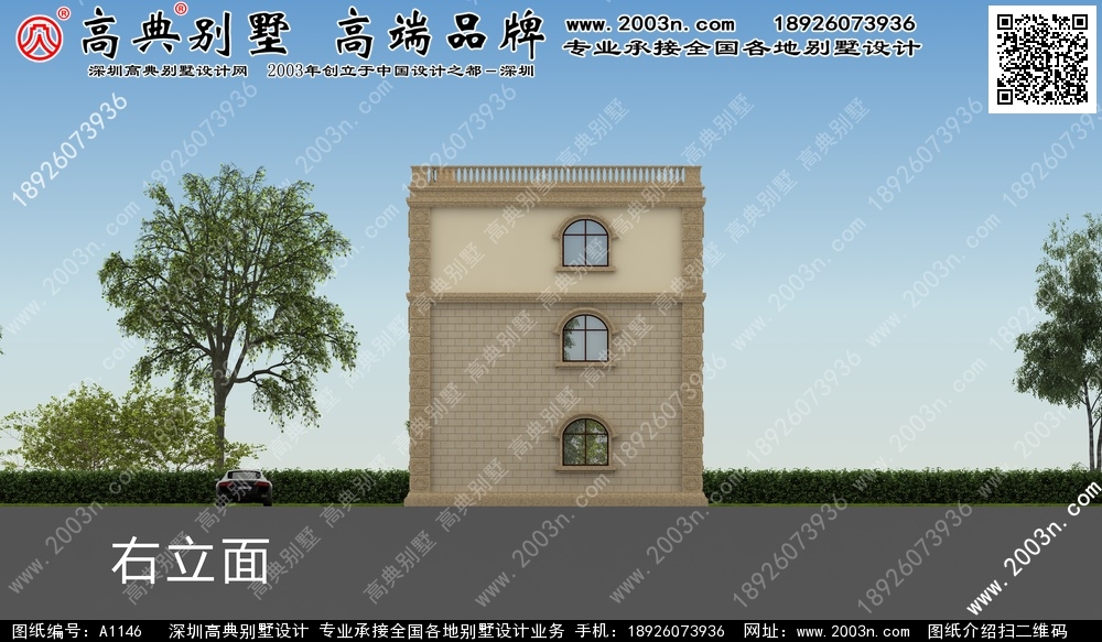 A1146号别墅外墙主要材料:外墙砖、水泥构件、真石漆 |
