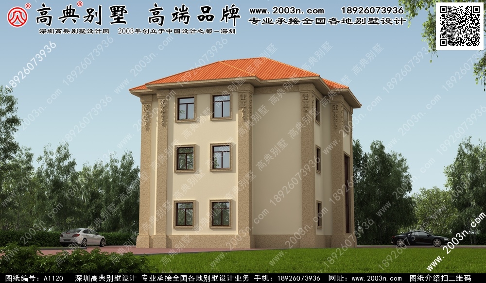 A1120号别墅设计图纸及效果图介绍: