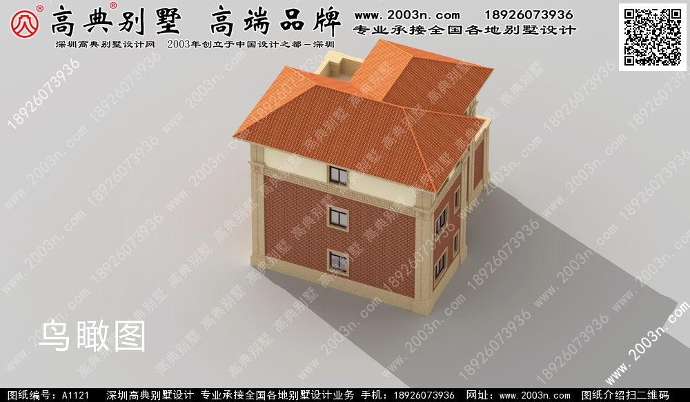 A1121号别墅外墙主要材料:真石漆、劈开砖、310X310S瓦