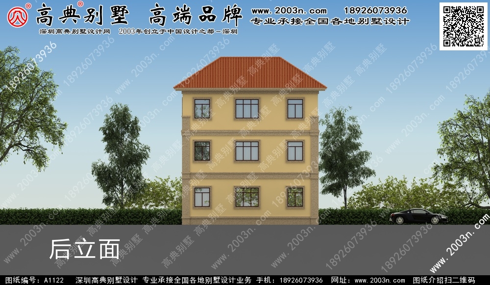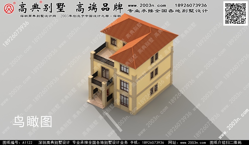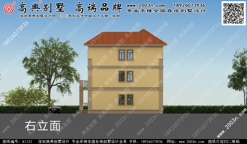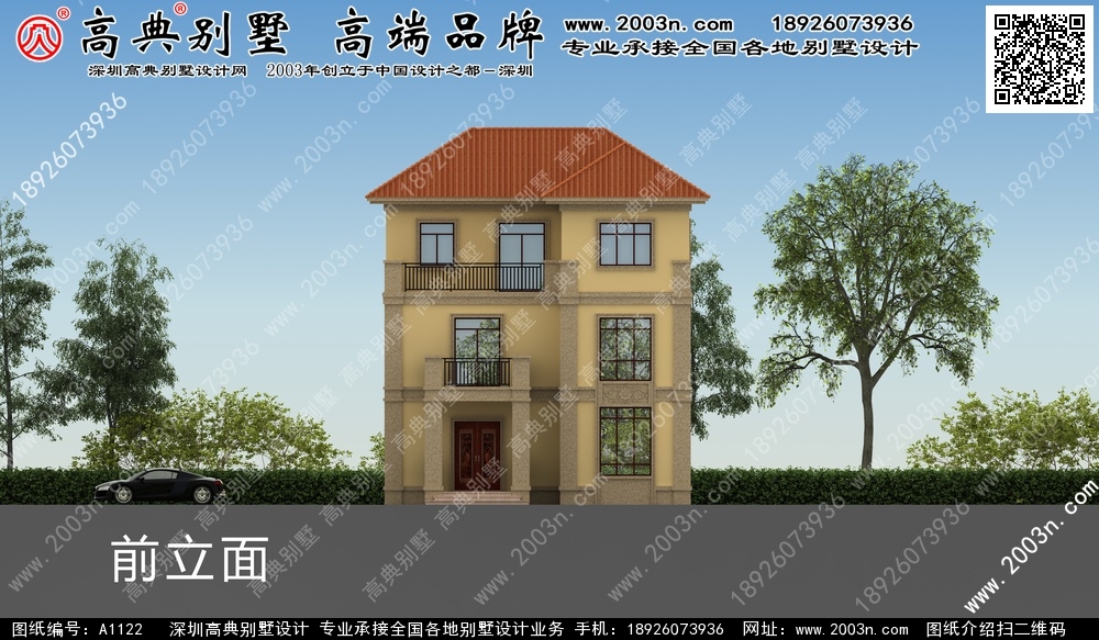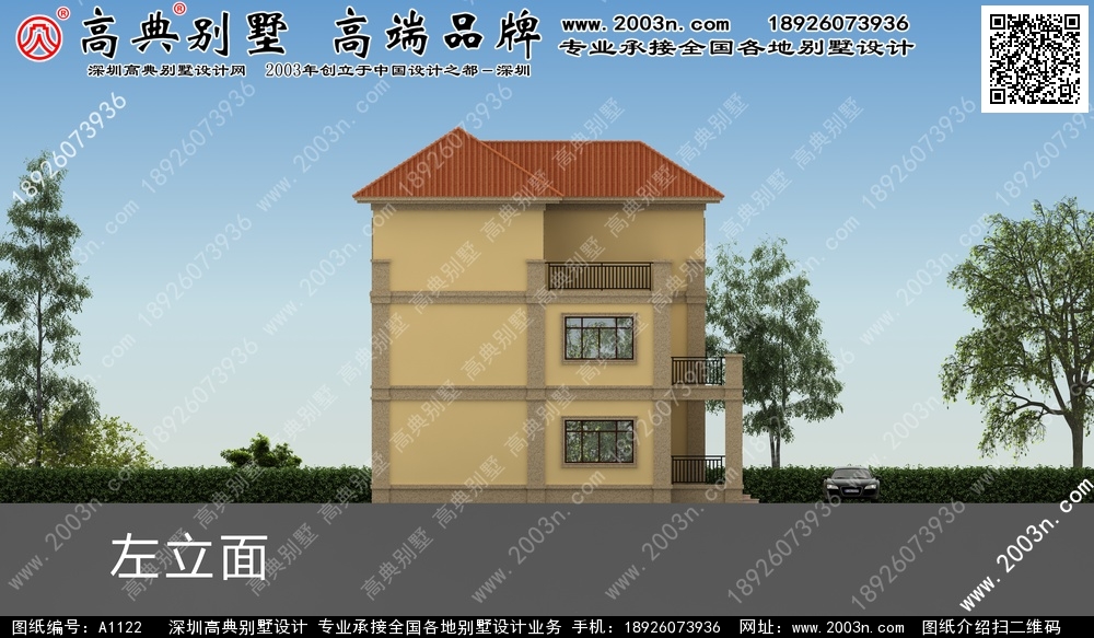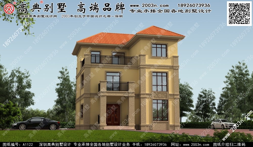 A1122号别墅外墙主要材料:真石漆、铁艺栏杆、310X310S瓦