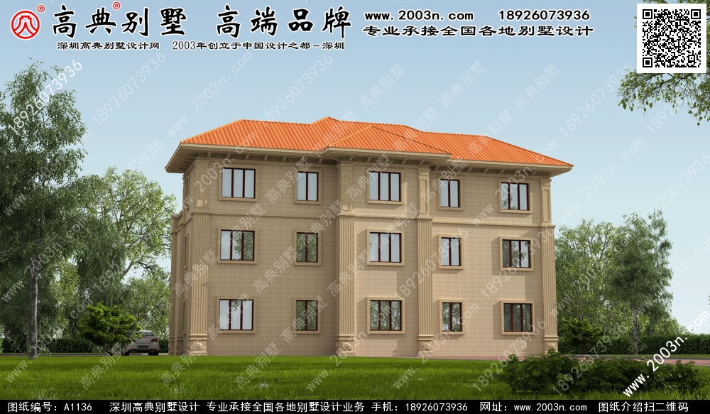 A1136号别墅设计图纸及效果图介绍: