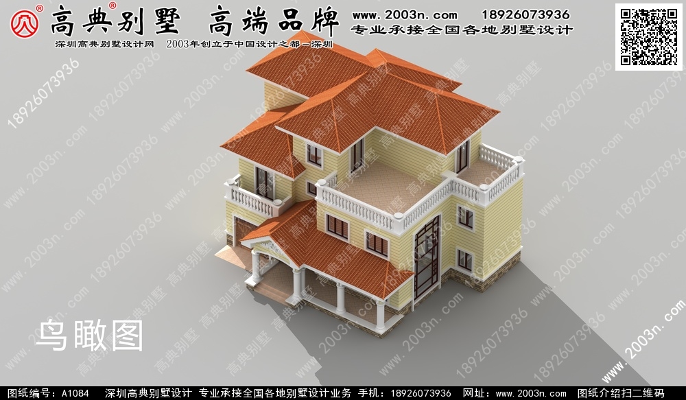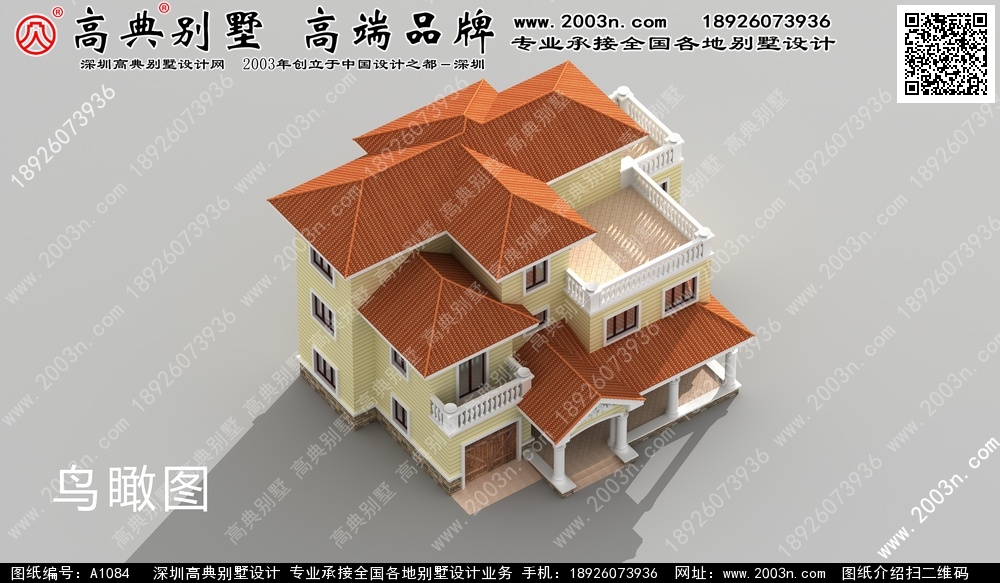 三层小别墅外观效果图首层201平方米图纸编号a1084