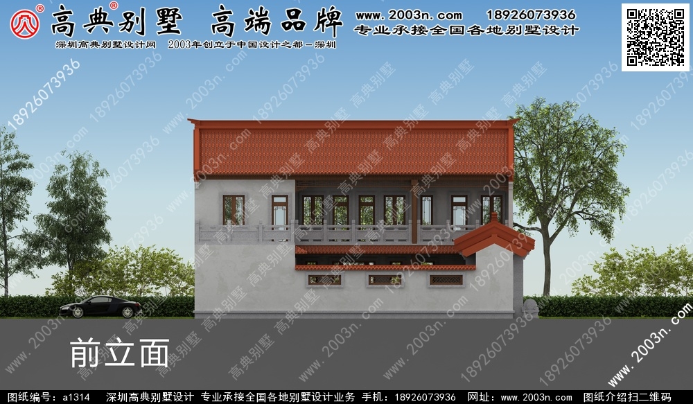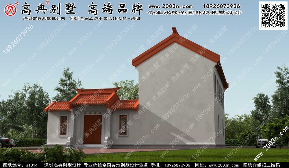 A1314号别墅外墙主要材料:真石漆、琉璃瓦 |