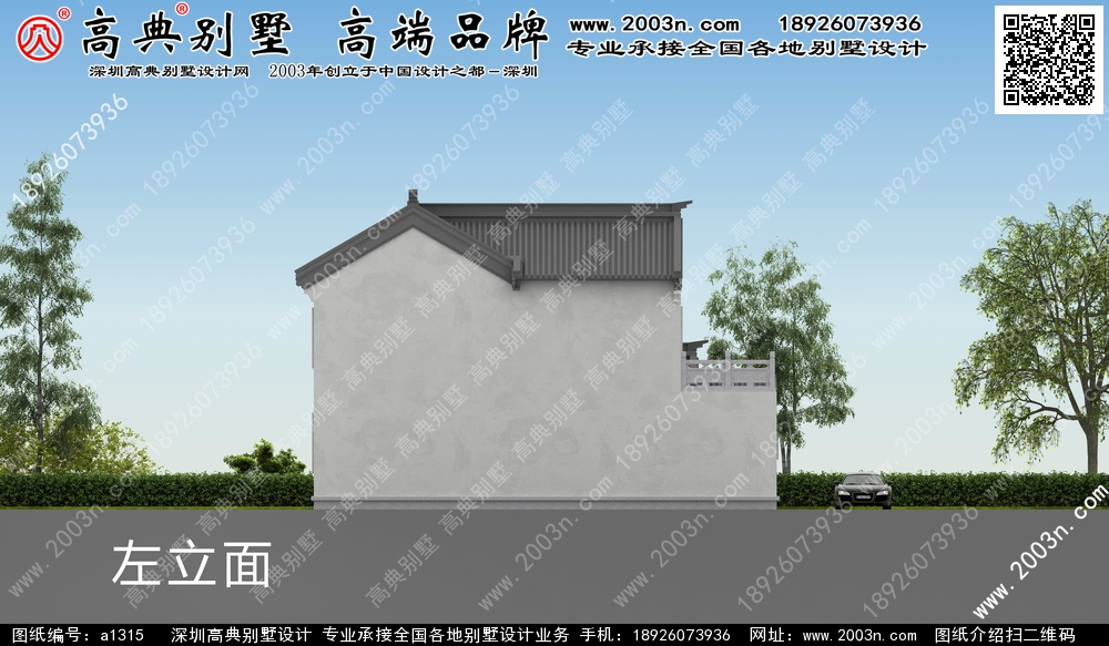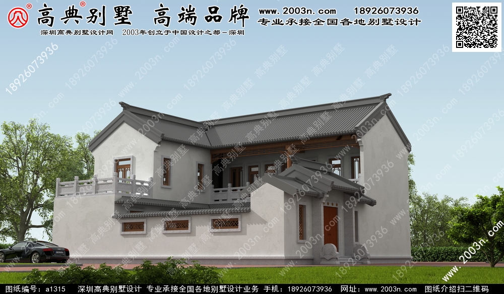 A1315号别墅外墙主要材料:真石漆、小青瓦 |