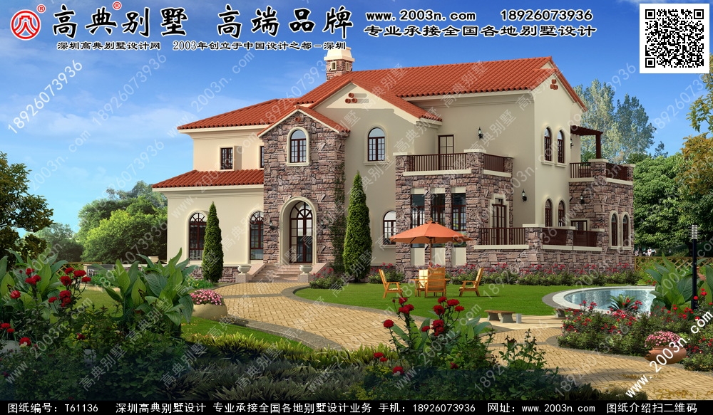 T61136号别墅设计图纸及效果图介绍: