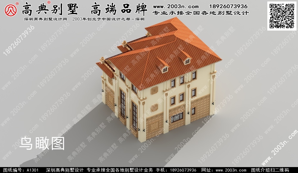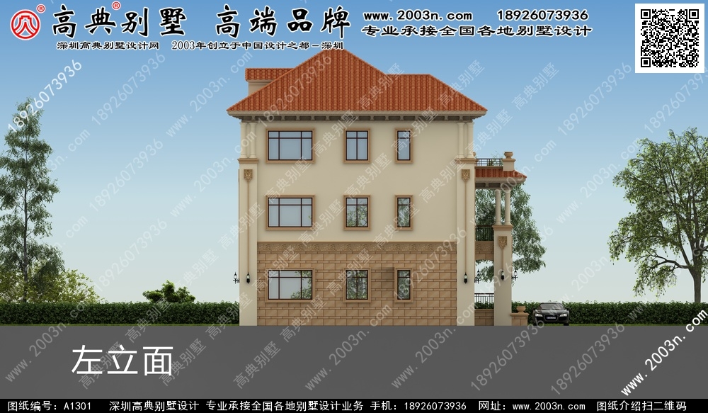 三层别墅外观效果图首层174平方米图纸编号A1301