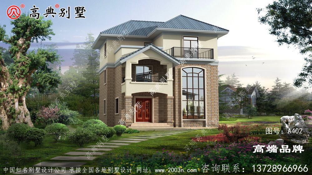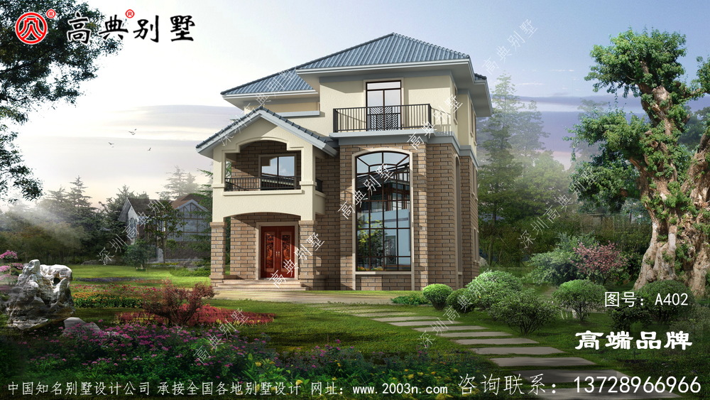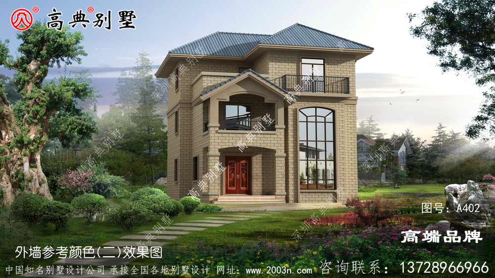 天然岩石漆、铁艺栏杆、外墙砖、屋面310X310S瓦