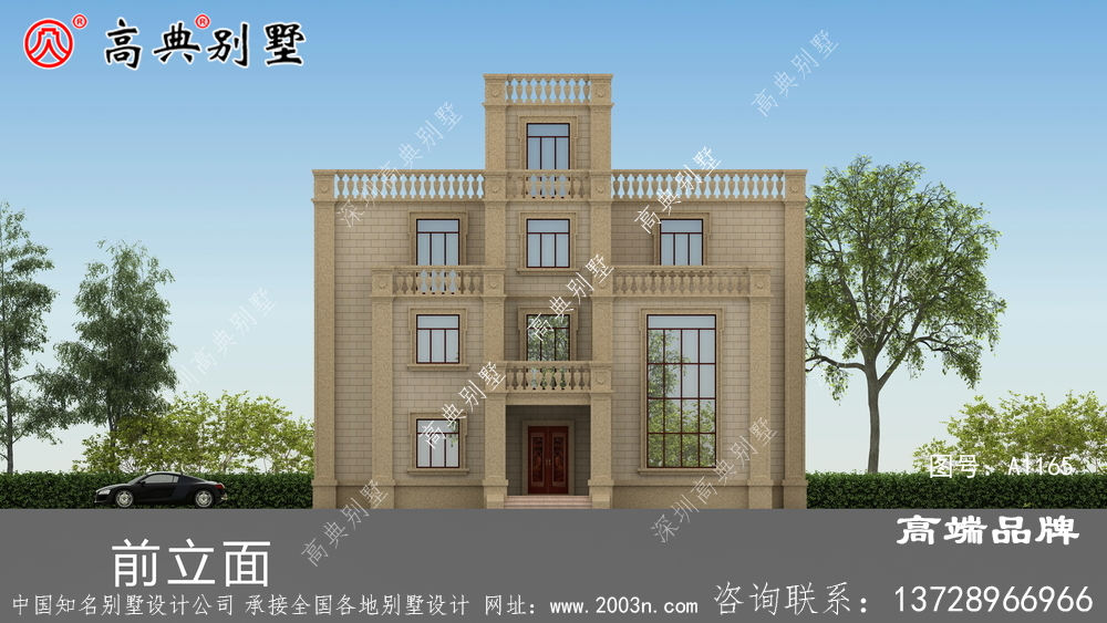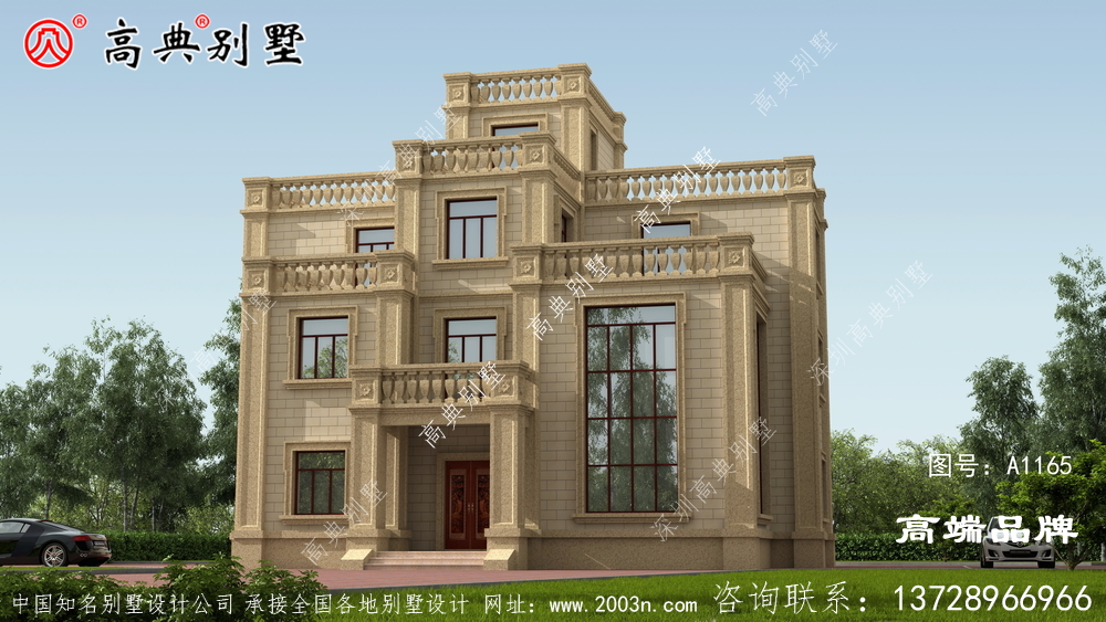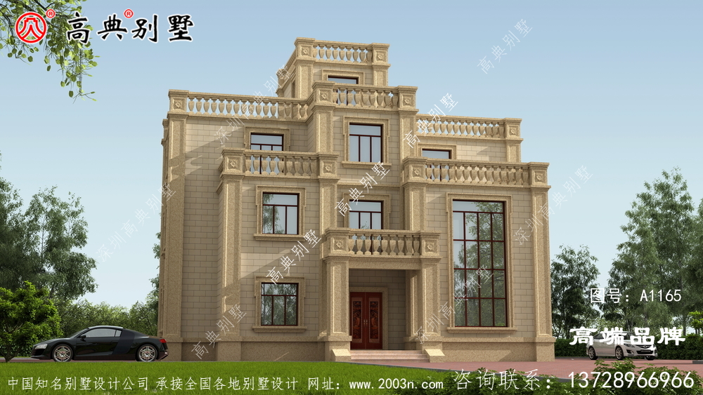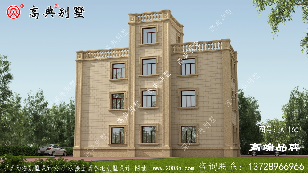 A1165号别墅外墙主要材料:水泥构件、真石漆、外墙砖