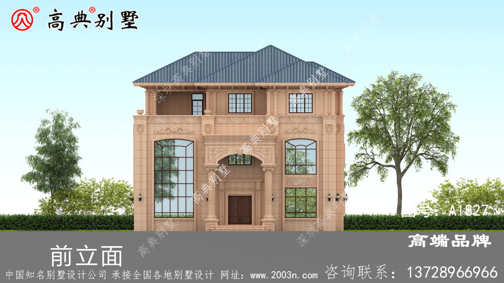 A1827号别墅外墙主要材料:真石漆、310X310S瓦