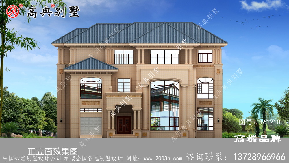 t61210号别墅外墙全部采用揭阳红石材干挂、外墙纯石材别墅、屋面用310X310S瓦