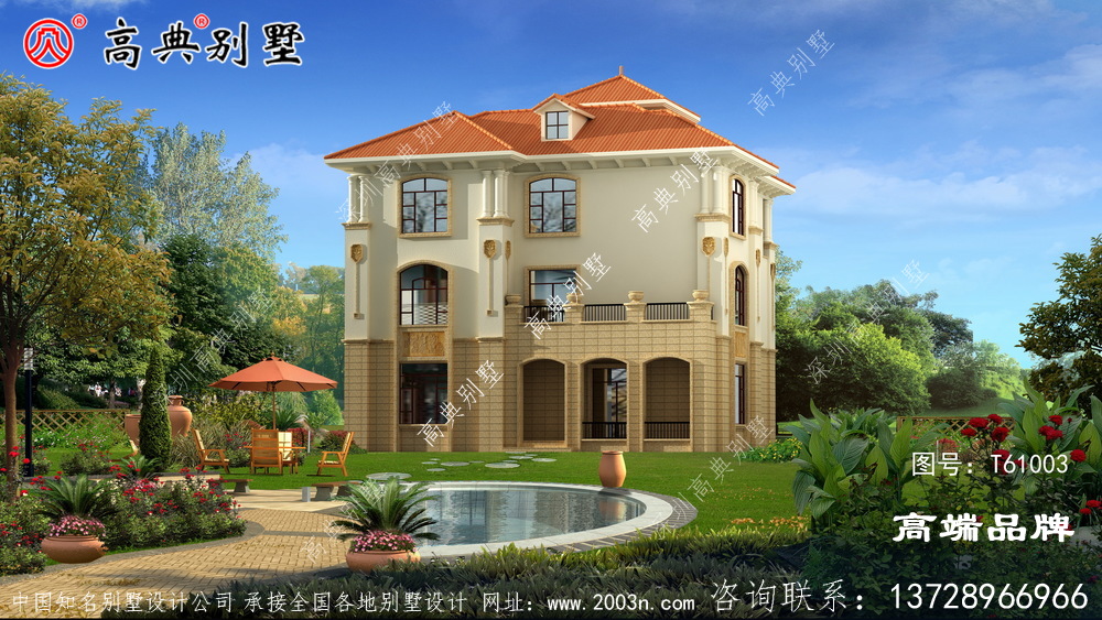 不要小看农村,现在农村的土豪越来越多,建造别墅的人还非常多,下面这款外观简单大气的欧式风格三层别墅,是很受欢迎的一款别墅户型。