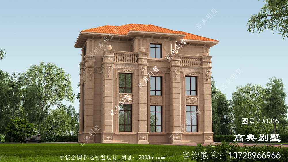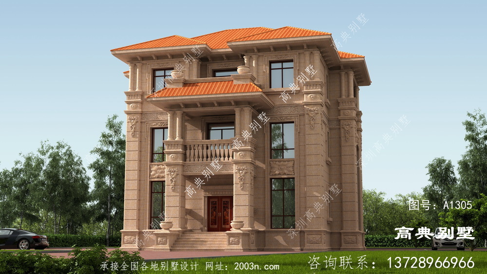 这座欧式三层豪华大气别墅设计充满着华丽精致的外观效果,传达生活品味的追求。欧式风格在视觉上既崇高又宏伟。