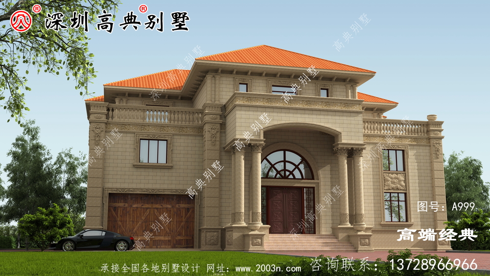 室内功能:首层两房三厅一厨三卫一车库,二层五房一厅五卫,三层五房两卫三露台