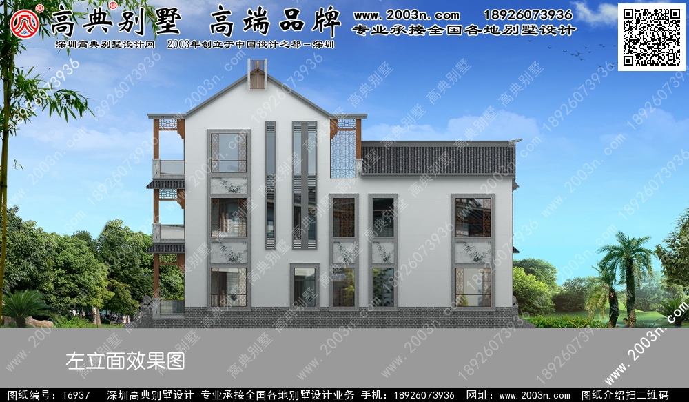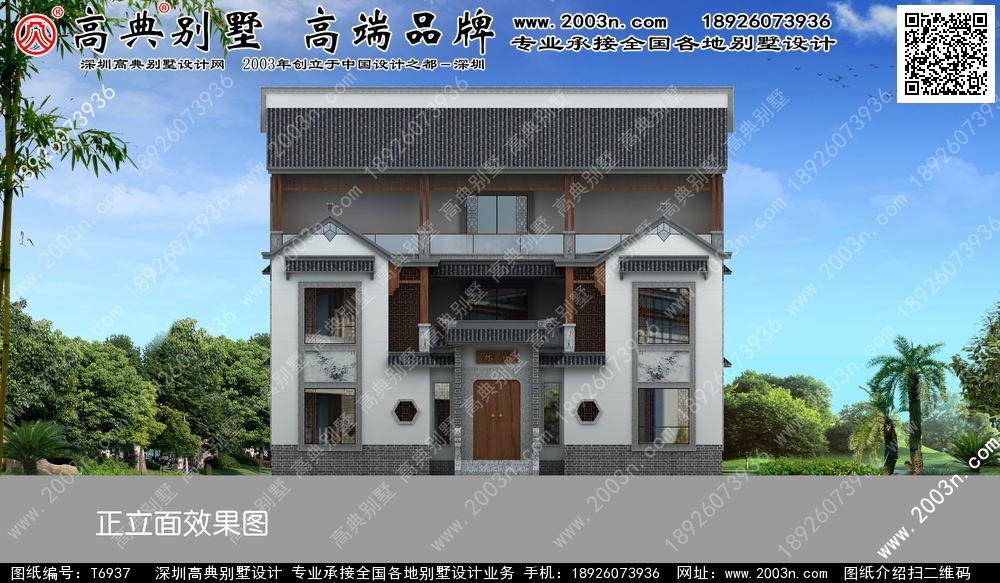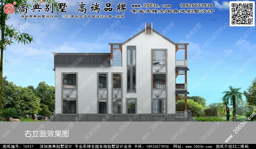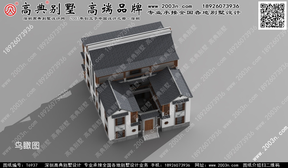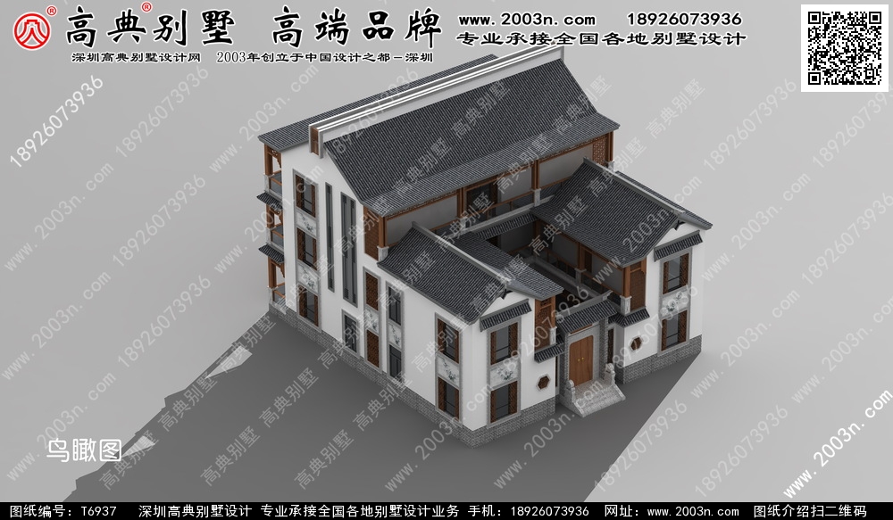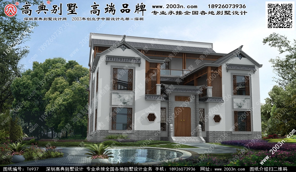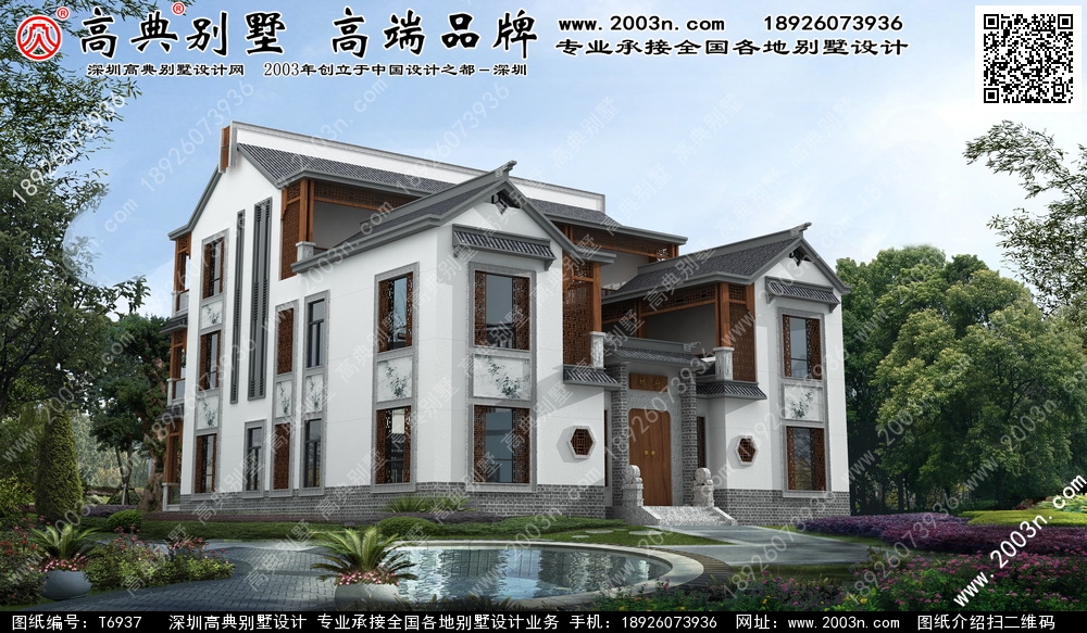 简中式别墅外观效果图首层352平方米图纸编号T6937