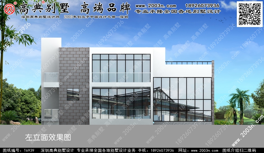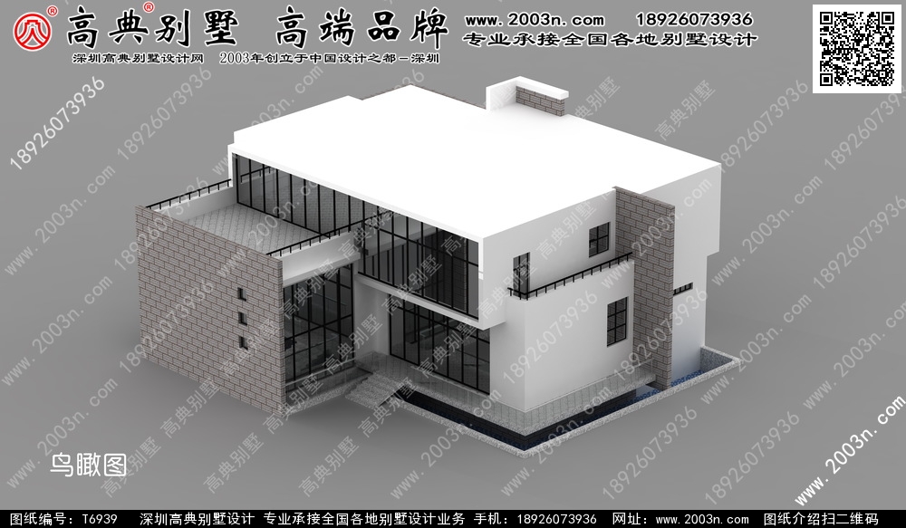 t6939号别墅外墙主要材料:外墙涂料、不锈钢玻璃栏杆、外墙砖