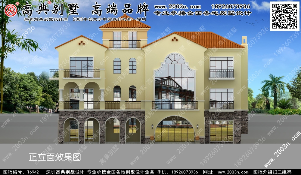 t6942号别墅外墙主要材料:天然岩石漆、西班牙瓦、文化