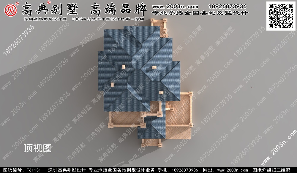 t61131号别墅外墙全部采用沙漠棕石材干挂及天然砂岩石浮雕图案、外墙纯石材别墅、屋面用310X310 S瓦