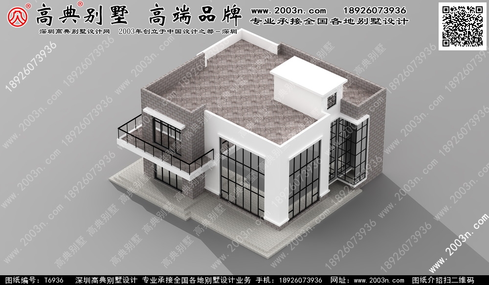 t6936号别墅外墙主要材料:外墙涂料、不锈钢玻璃栏杆、外墙砖