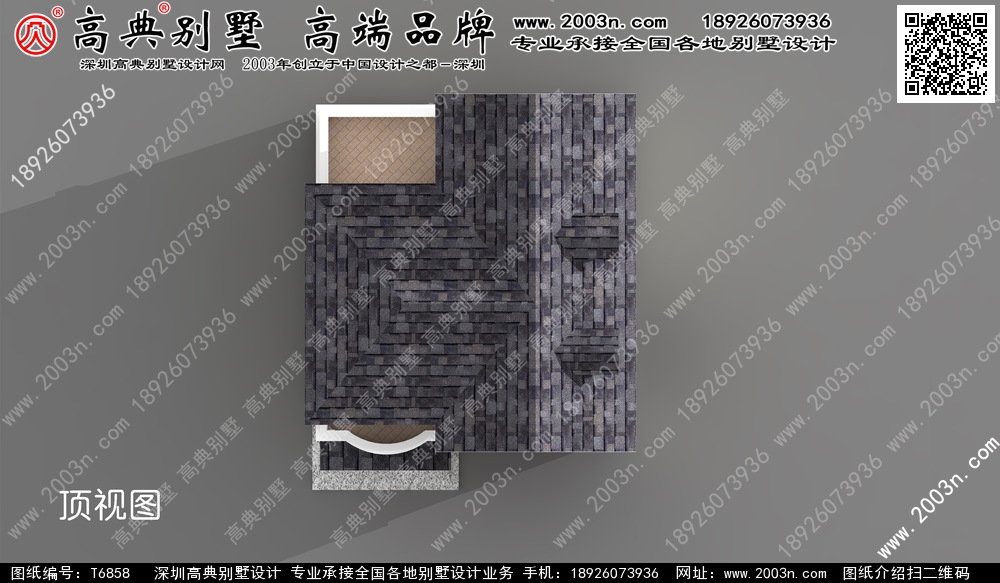 t6858号别墅外墙主要材料:外墙涂料、外墙文化砖、玻纤瓦、GRC水泥葫芦柱、蘑菇石
