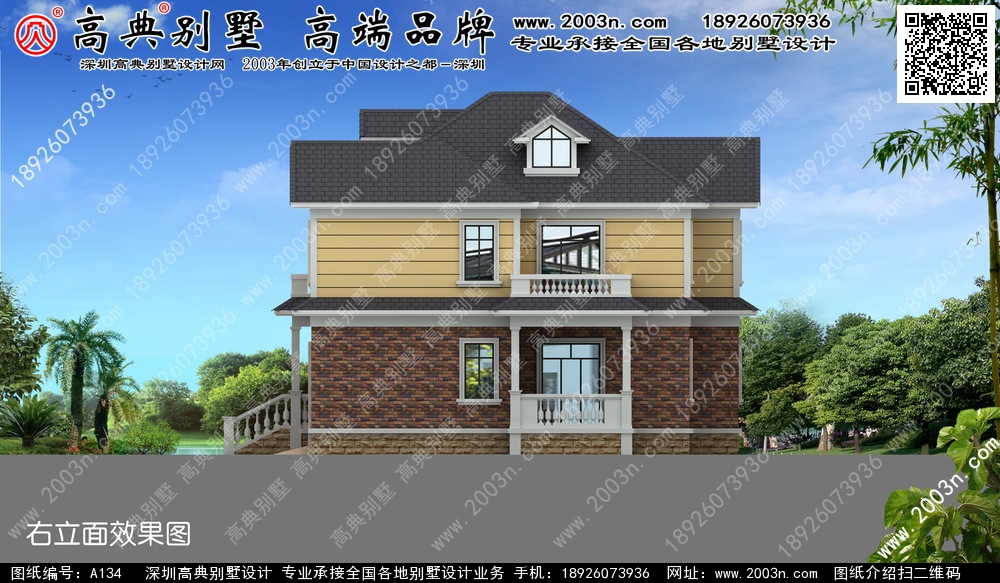 真石漆、水泥构件葫芦柱栏杆、蘑菇石、屋面灰色水泥平板瓦