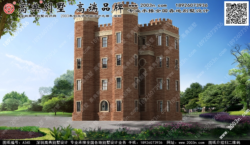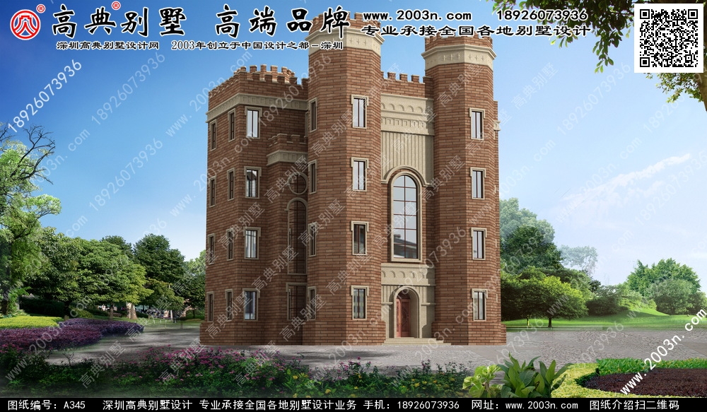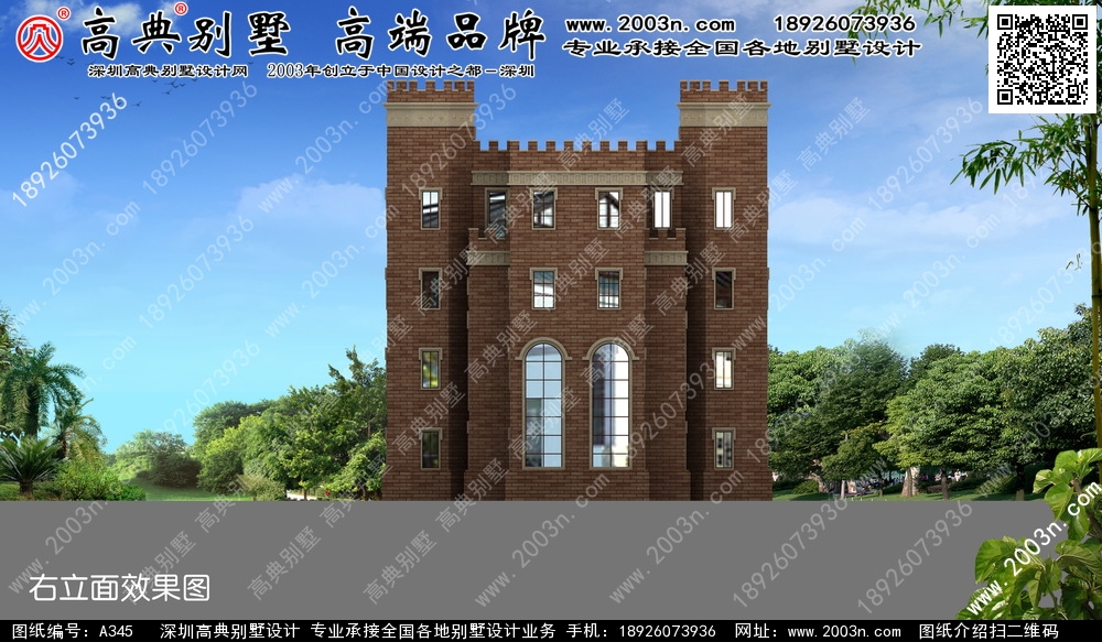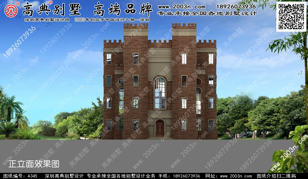 A345号别墅外墙主要材料:天然岩石漆、蘑菇面黄锈石、欧式水泥构件线条、外墙劈开砖