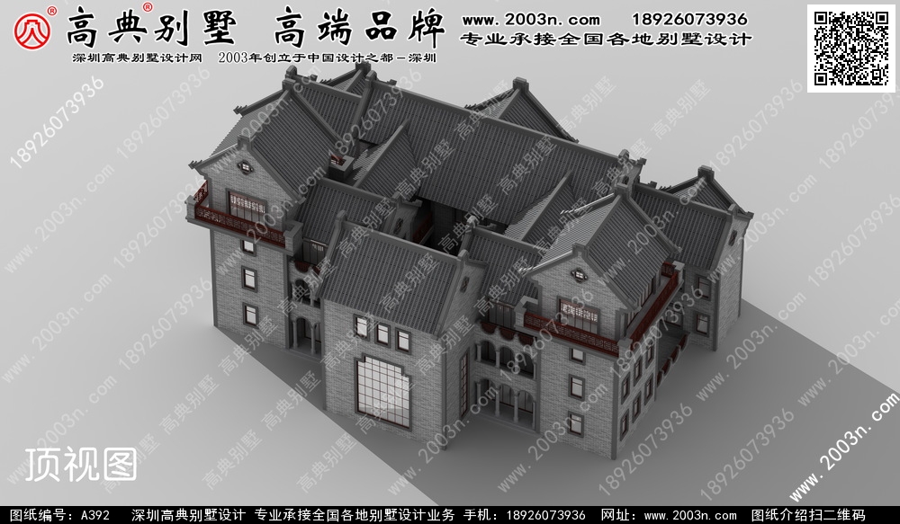 A392号别墅外墙主要材料: 仿古小青瓦、青灰砖、真石漆