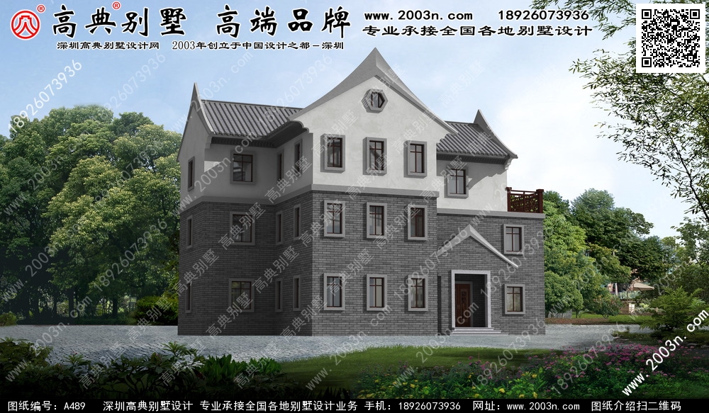 外墙真石漆、外墙仿古小青灰砖、屋顶灰色仿古青灰瓦