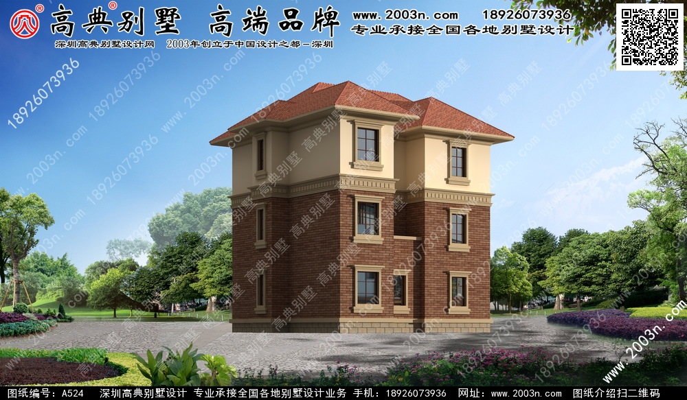 A524号别墅设计图纸及效果图介绍: