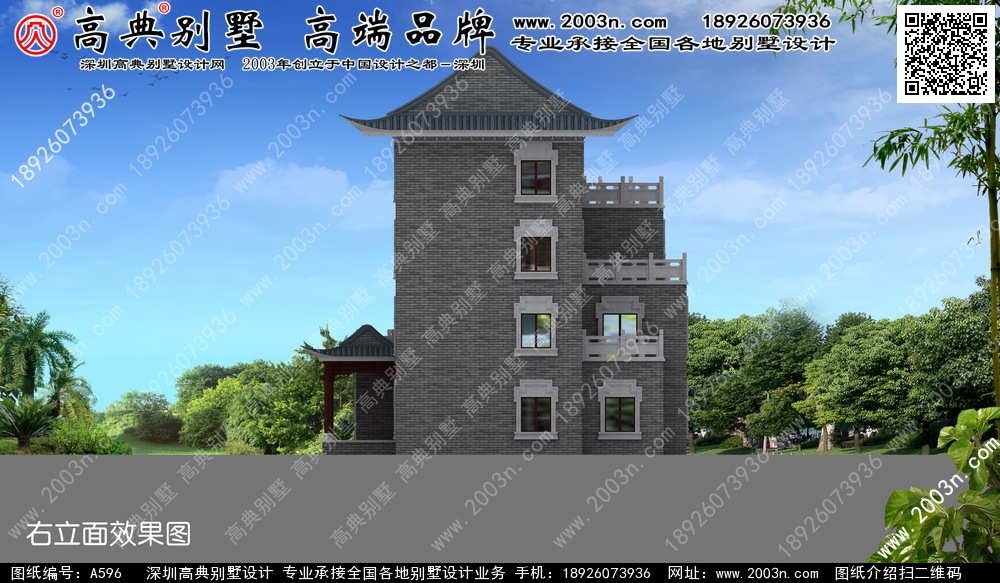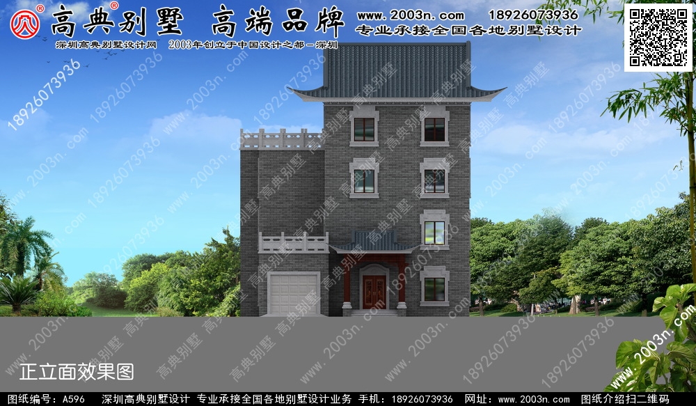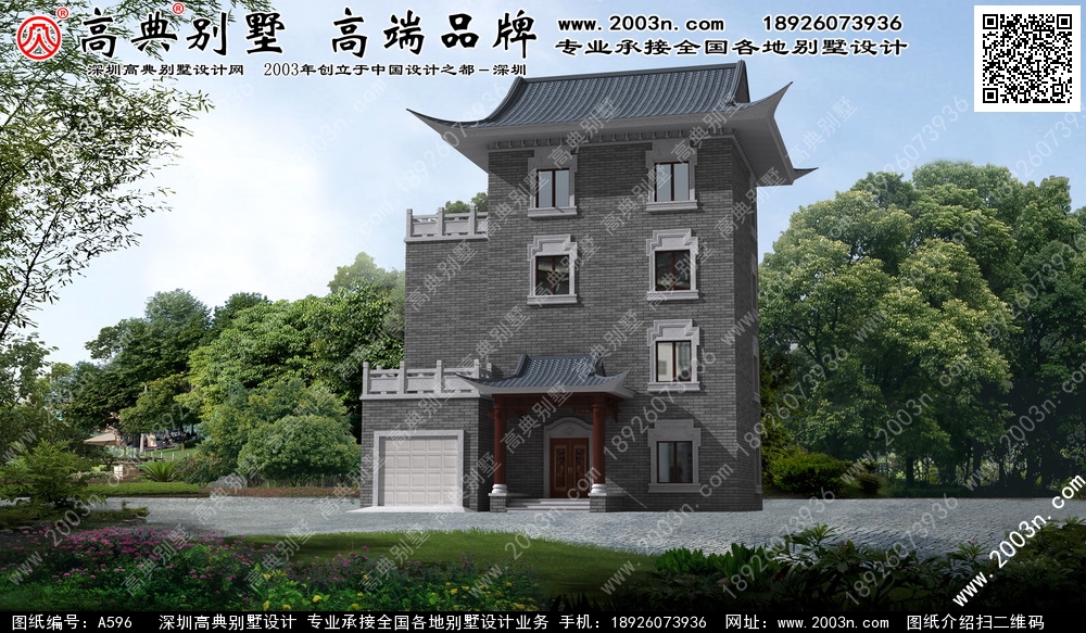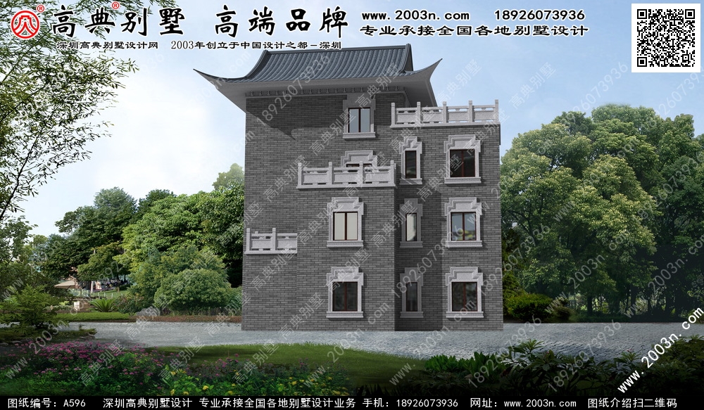 天然岩石漆、外墙小青砖、山东白麻石仿古石栏杆、石材构件线条、屋面中式琉璃瓦