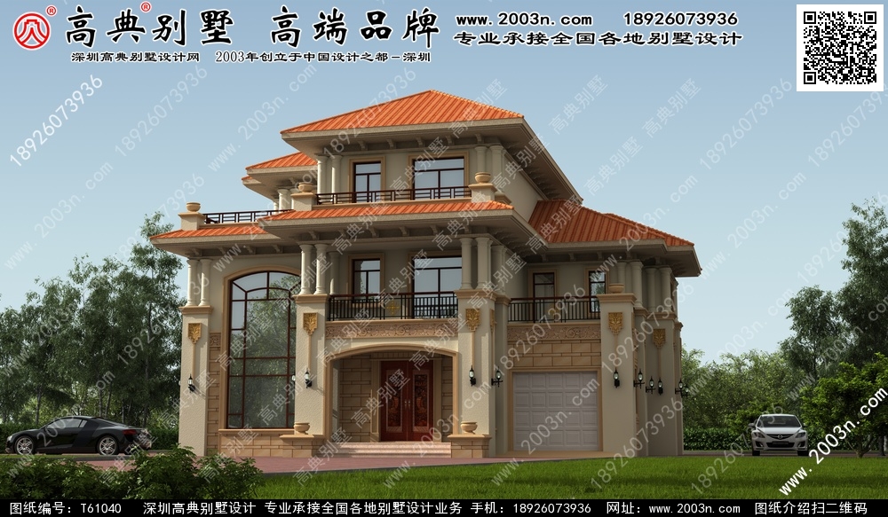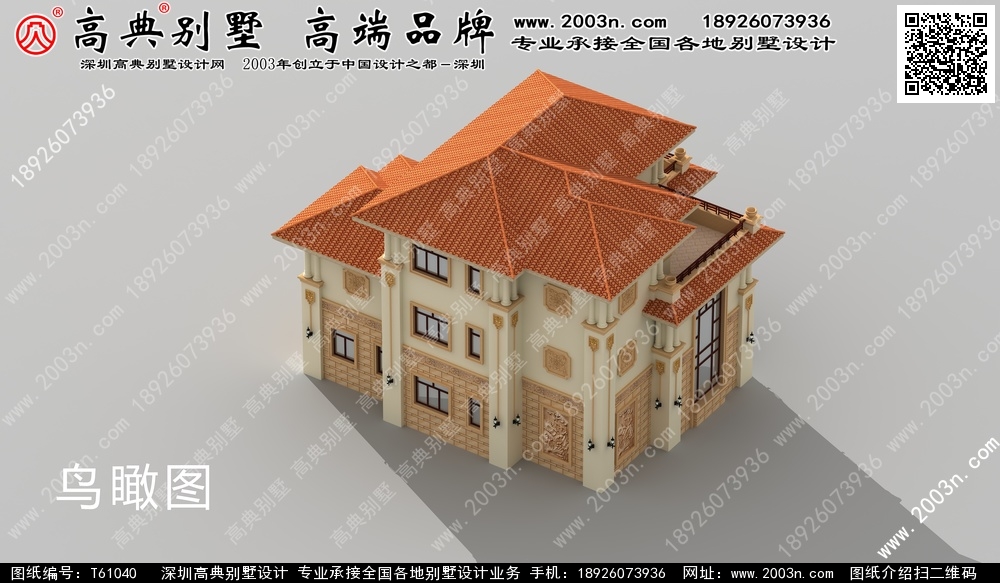 T61040号别墅设计图纸及效果图介绍: