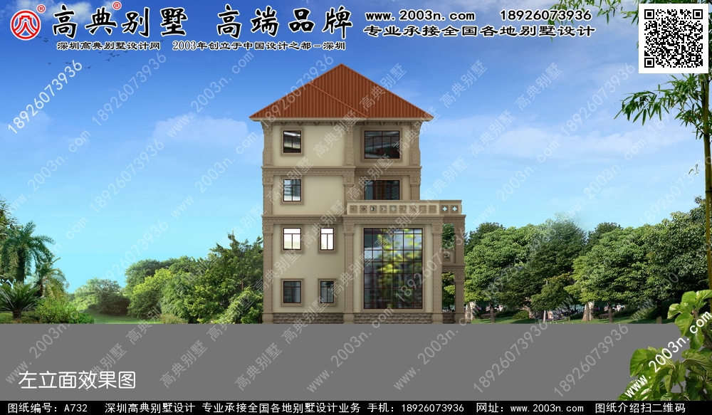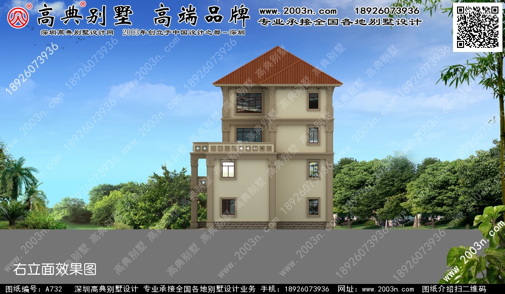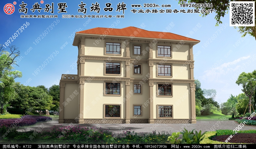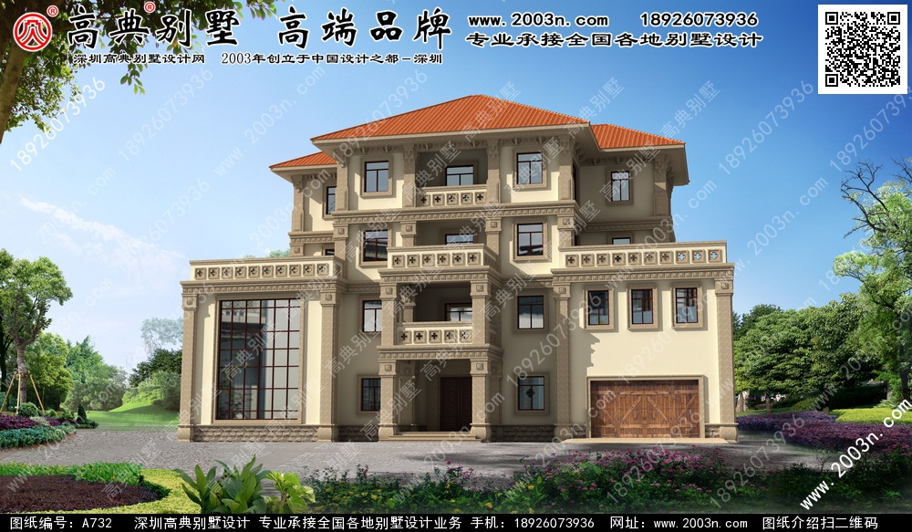 此别墅外墙主要材料:天然岩石漆、蘑菇面黄锈石、水泥装饰构件线条、屋面310X310S瓦