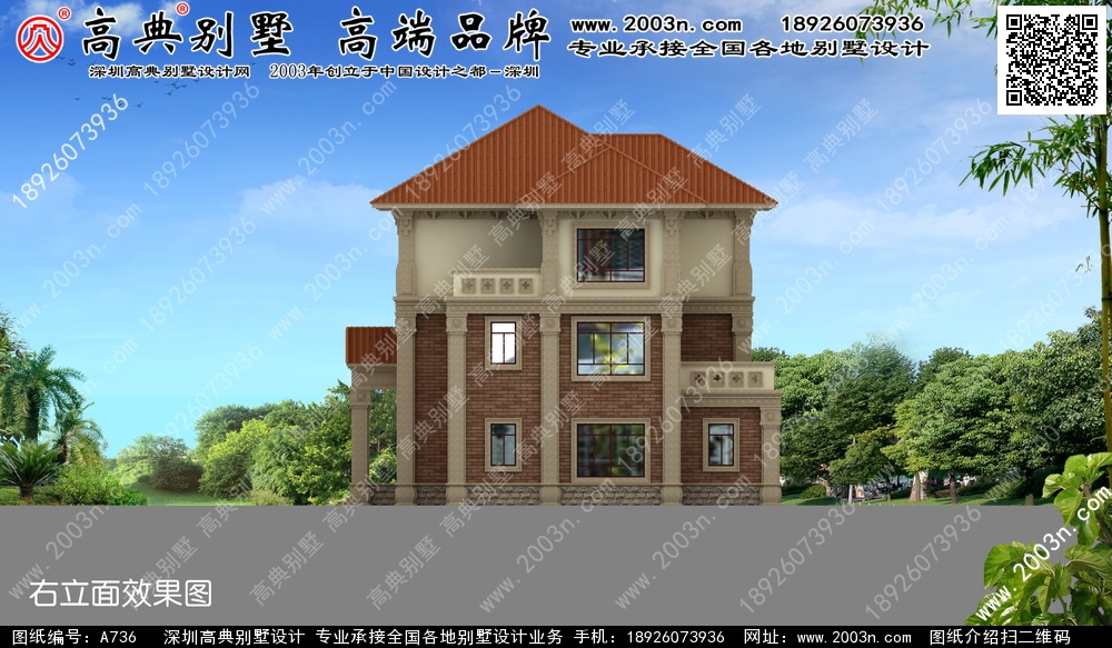 A736号别墅设计图纸及效果图介绍: