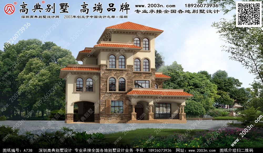 此别墅外墙主要材料:文化石、真石漆、310X310S瓦