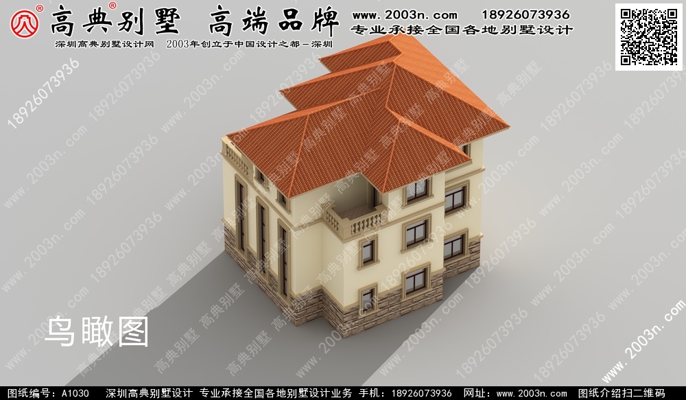 A1030号别墅外墙主要材料:蘑菇面黄锈石、外墙真石漆、屋面310X310S瓦