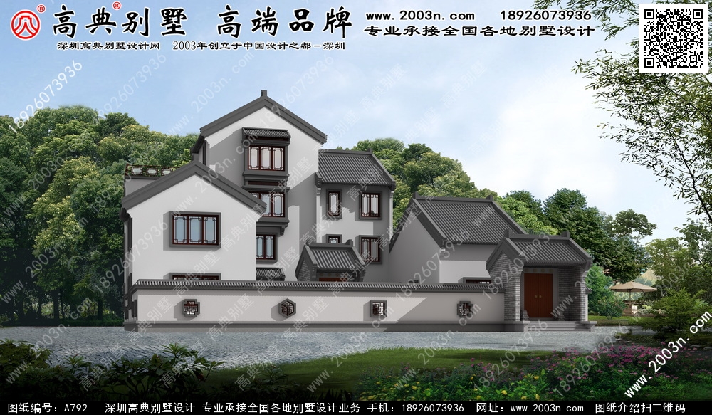 外墙面贴仿古青砖100X380、天然岩石漆、中式石材构件线条、屋面小青瓦