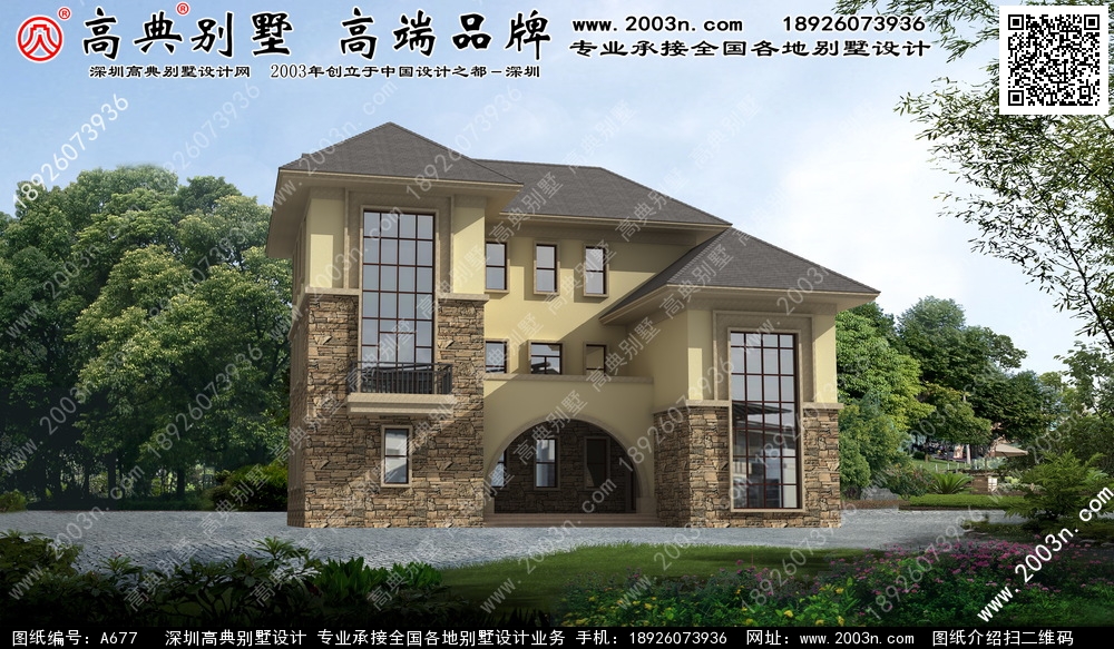 天然岩石漆、铁艺栏杆、外墙文化石、屋面水泥平板瓦