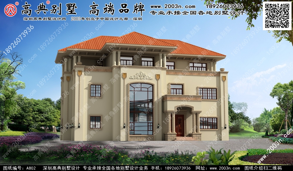 A802号别墅设计图纸及效果图介绍: