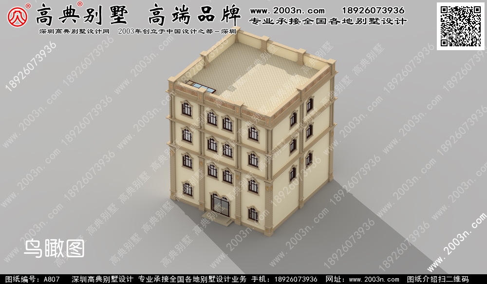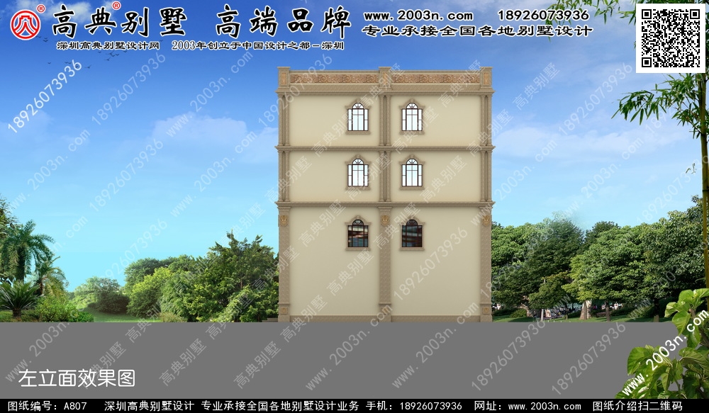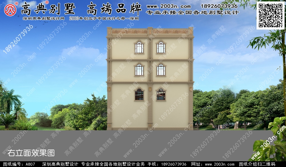 A807号别墅外墙主要材料:外墙天然岩石漆、欧式水泥构件及线条