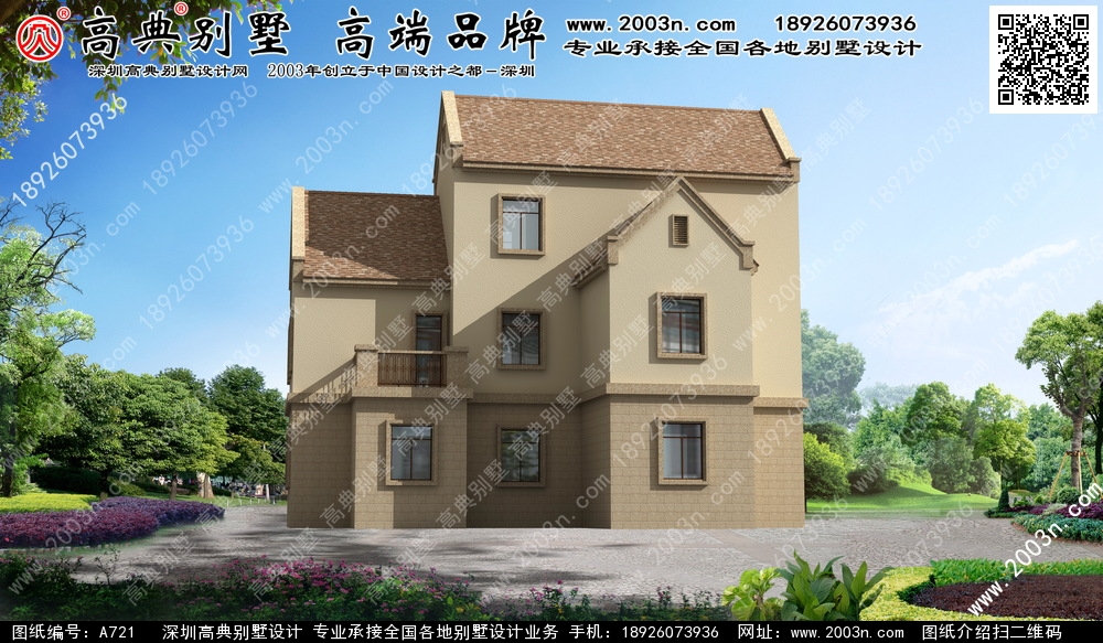外墙天然岩石漆、墙面荔枝面黄金麻石材、欧式构件线条、屋面水泥平板瓦