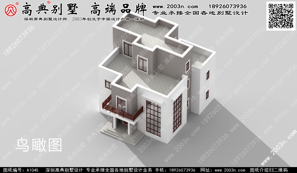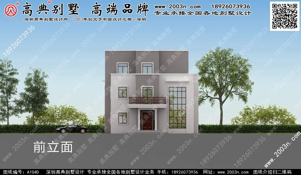 A1040号别墅外墙主要材料:真石漆、外墙砖、铁艺栏杆
