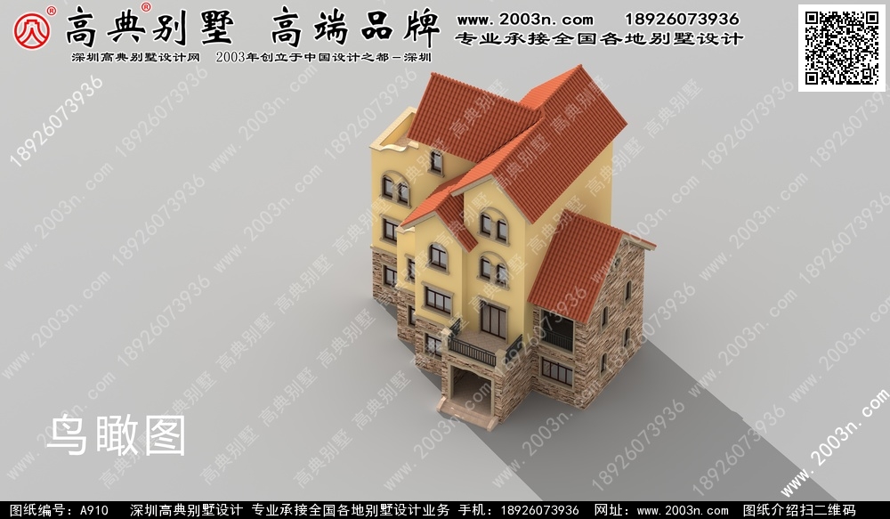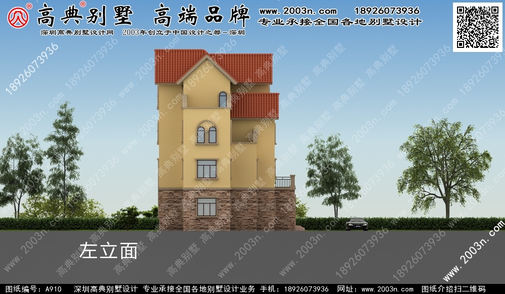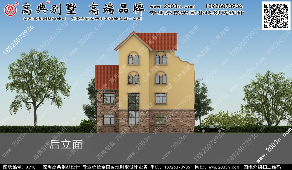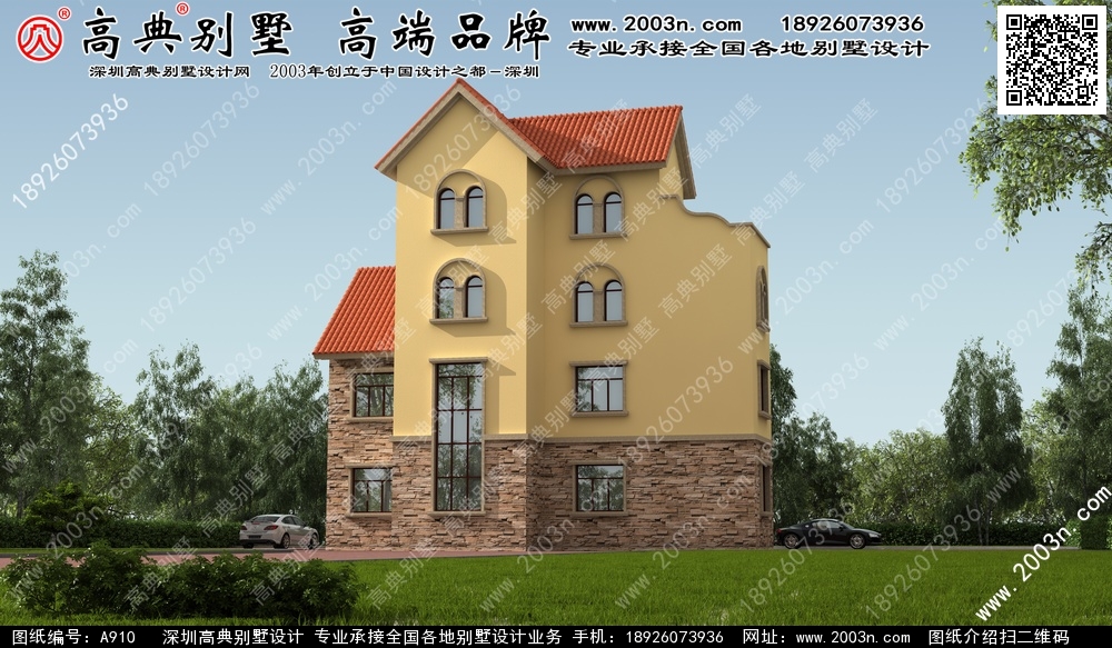 此别墅外墙主要材料:文化石、真石漆、西班牙筒瓦