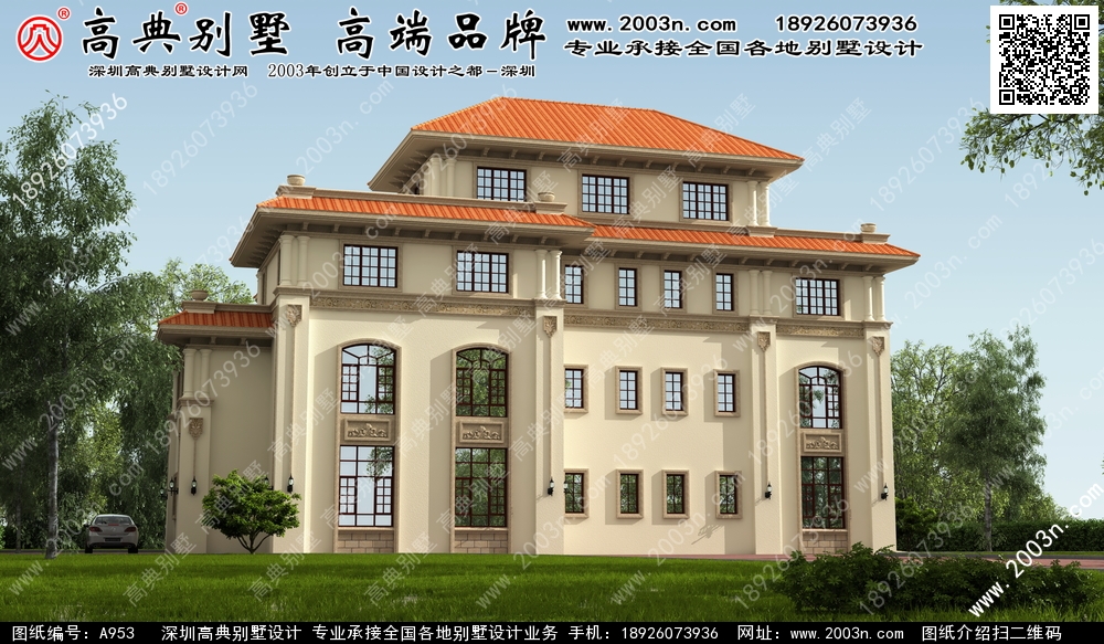 此别墅外墙主要材料:黄锈石、真石漆、S瓦