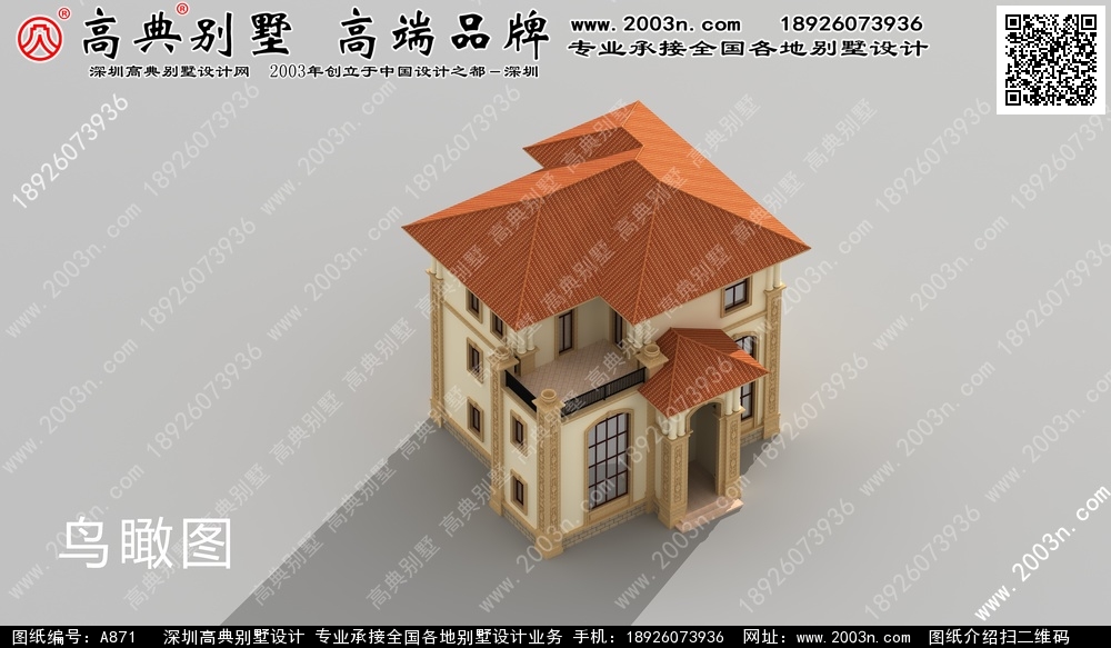 真石漆、310X310S瓦、铁艺栏杆、火烧面黄锈石、欧式水泥构件圆柱线条浮雕造型