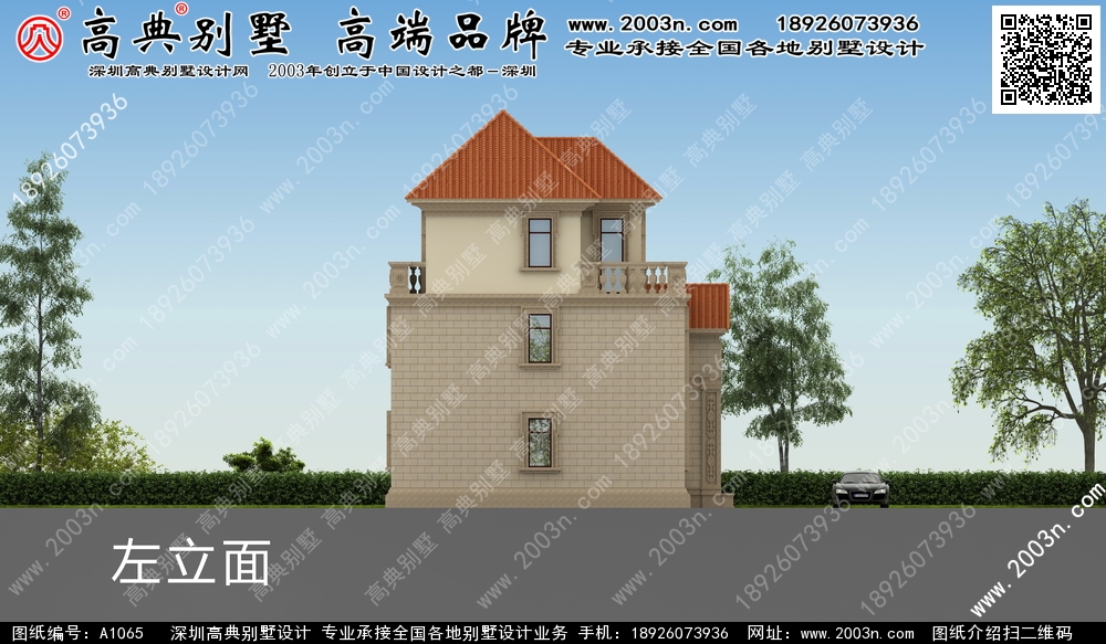 A1065号别墅外墙主要材料:外墙真石漆、外墙砖、外墙欧式水泥构件、屋面S瓦