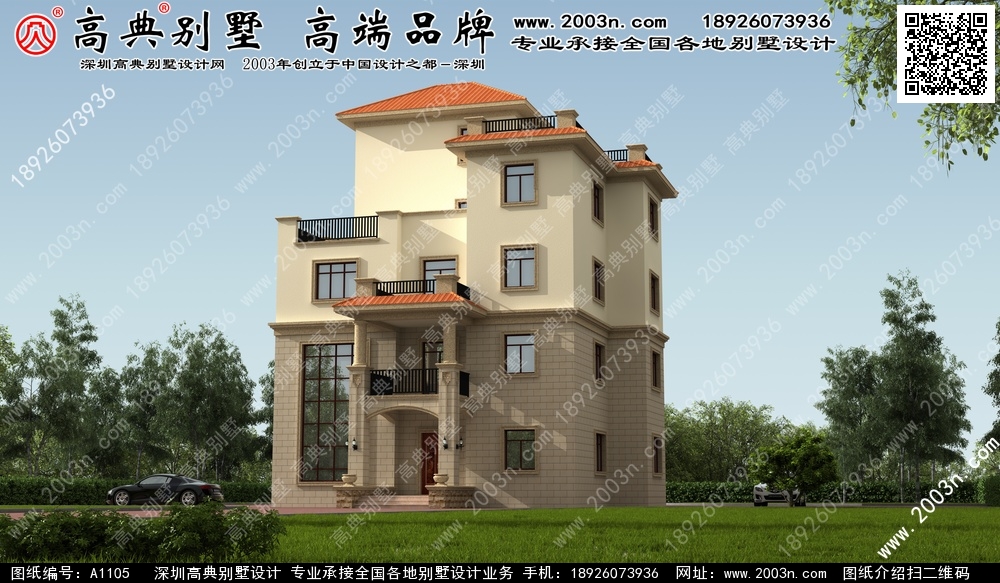 • 五层楼房外观设计图首层147平方米图纸编号A1105 - 高品别墅