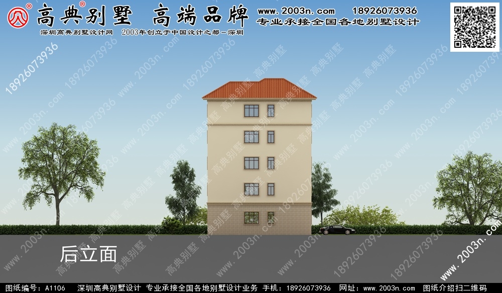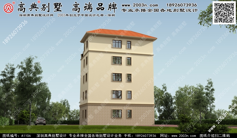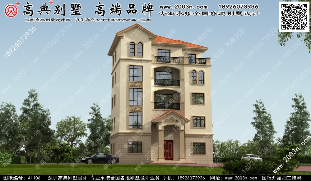 A1106号别墅外墙主要材料:真石漆、火烧面黄锈石、水泥构件、310X310S瓦