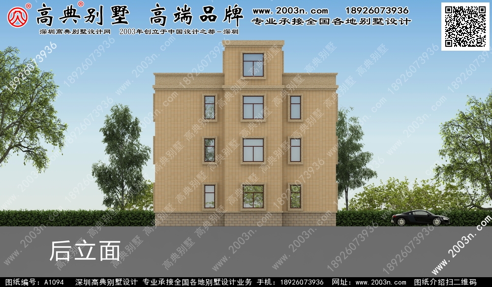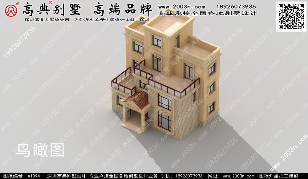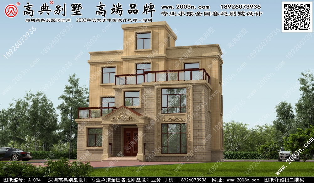 A1094号别墅外墙主要材料:外墙砖、荔枝面黄锈石、欧式水泥构件、天然真石漆