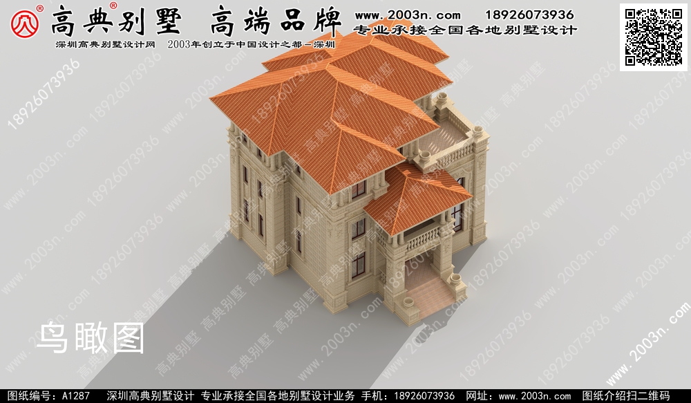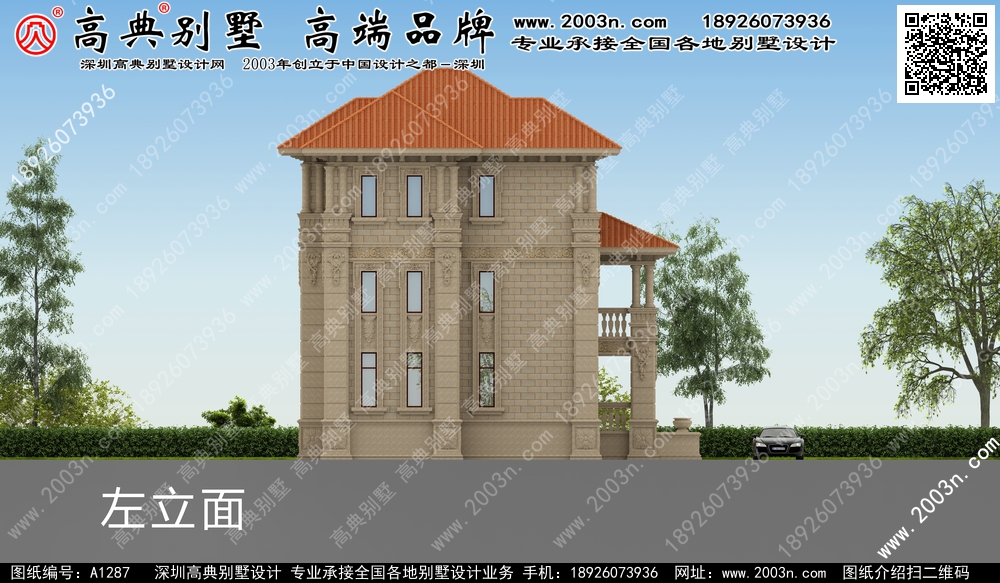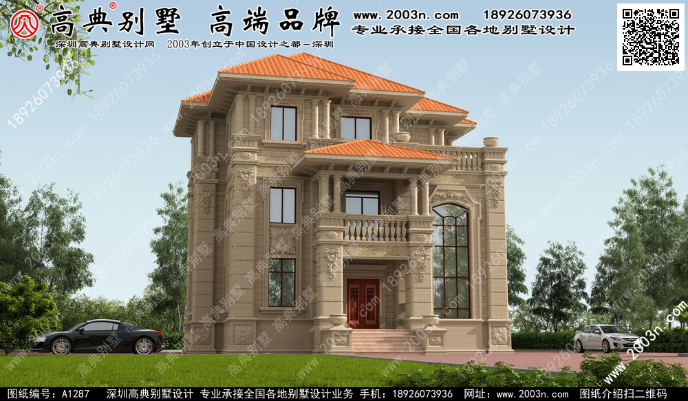 A1286号别墅外墙主要材料:S瓦、真石漆、砂岩石、黄锈石